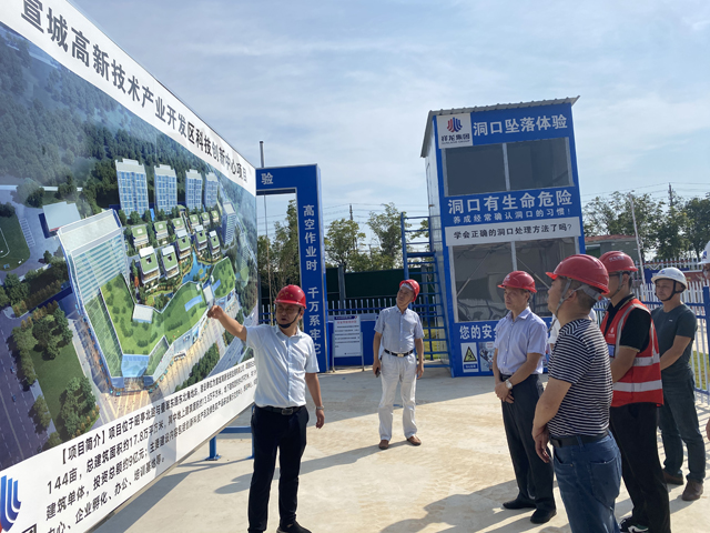2021年9月24日上午,宣州區副區長方強一行蒞臨我司科技創新中心項目調研,聽取了項目的規劃和建設情況匯報,并對項目的安全生產工作做出重要指示。