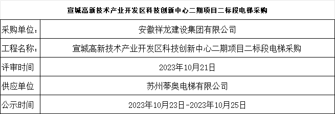 宣城高新技術(shù)產(chǎn)業(yè)開發(fā)區(qū)科技創(chuàng)新中心二期項(xiàng)目二標(biāo)段電梯采購結(jié)果公示